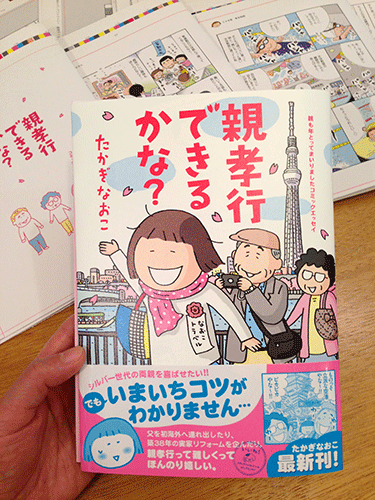 2015年2月4日(水)新刊とフェアのお知らせ。 ただいま3月発売の単行本に向けて、連日原稿を描く日々です。 まだまだ作業が残ってるため発表するのは正直ドキドキヒヤヒヤなのですが、今回の本はフェアをやっていただくことになったため、ちょっと早めに新刊のお知らせをします。 今度の本は『親孝行できるかな?』というタイトルでして、KADOKAWAメディアファクトリーさんより3月13日発売の予定です。 コミックエッセイ劇場で少し連載していた『シルバー父さん』のタイトルを変更しまして、描き下ろしを加えたものになります。 そしてこの単行本を買っていただいた方に、単行本のカバーイラストが入った特製クリアファイルのプレゼントがあります! このフェアを実施していただける書店さんは全国に何店かあるそうなのですが、どこのお店かは後日発表とのことです。 あとe-honのサイトで予約していただいてもフェア対象となるようなので、詳しくはこちらもご覧ください。 さらにこの新刊と、あともう1冊フェア対象の本を買っていただくと、私の電子版コミックエッセイが読めるというプレゼントもあります。 こちらのフェア対象の本もまだ発表になってなくて申し訳ないのですが、こちらもまた後日発表になるようです。 フェア対象のお店以外で買われますとプレゼントは対象外となりますので、ご注意ください。 まだやらねばなことがてんこ盛りなので、簡単なお知らせですみません〜。 詳しくはまたお知らせします。 残り原稿がんばりますので、どうぞよろしくお願いいたします。 |