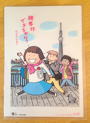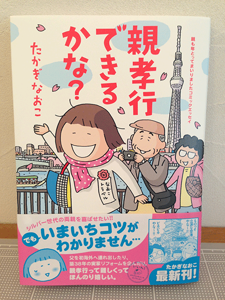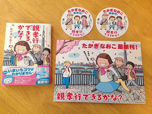 2015年3月6日(金)新刊できました。 3月13日発売『親孝行できるかな?』の完成見本品が届きました。 ゲラチェックなどで何度も確認してるのですが、本になって手に取るとまた感じが変わるので、出来上がってくると毎回うれしいです。 こんな感じに仕上がってまーす。 ![]() カバーには東京スカイツリーがばーん!とそびえ立ってます。 ![]() 両親と韓国旅行をしたときのエピソードや… ![]() 娘として日々思うことなど、いろいろ詰まってます。 (今回の本はカラーではないページもあります) そしてクリアファイルなどがもらえるフェアの詳細も発表になりました。 こちらのページを見ていただくとわかりやすいかと思うのですが、まずクリアファイルのほうは『親孝行できるかな?』をe-honでご予約いただくか、フェア実施書店でご購入いただくと、もれなくプレゼントとなります。 クリアファイルはたくさん作っていただいたようなのですが、数に限りがあると思いますので、ご購入の際はお店に在庫があるかご確認いただくといいかと思います。 さらもう1冊フェア対象商品をご購入いただくと、私の電子書籍がもらえるプレゼントもあります。 このページの下にある、私の既刊『愛しのローカルごはん旅』や他の作家さんの作品など全6冊が対象商品です。 画像にある黄色いフェア用の帯に応募ナンバーが書いてあるそうなので、この帯が巻かれたものを選ぶようご注意ください。 そこに書かれてる応募ナンバーと、クリアファイルにはさまってる応募ナンバーを2つ応募フォームに送っていただくと、電子書籍プレゼントとなります。 プレゼントの電子書籍ですが、以前『ひとり暮らしをとことん楽しむ!』誌上で連載させていただいてたひとり暮らし漫画の電子版数話分になります。(なので読んだことある方はすみません) 以上、ちょっとややこしくて申し訳ないですが、お近くにフェア対象の書店さんはありましたでしょうか〜。 早いところでは発売日の2〜3日前には店頭に並ぶかもです。 どうぞよろしくお願いいたします。 |