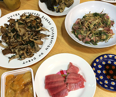 2015年6月5日(金)青森ナイト。 『はらぺこ万歳!』にも登場の青森の早瀬シェフのお店「海坊厨」さんに少し前にまた行って、おいしいお料理やフレンチトーストをいただいてきました。 本を読んだ方もたくさん来てくださってるようで、行った日も親子で来店の読者さんがいらっしゃいました。 特にゴールデンウィークは連日予約が入ってたようで、「ホテルに勤めてた頃以来に連日フレンチトーストを焼いてるよ!」と早瀬さんが嬉しそうに言ってました。 九州とか四国とか、かなり遠くから来てくださってる方もいるようで、本当にどうもありがとうございます。 早瀬さんが私の他の本も読んでみたいと言ってたので、後日既刊の本をまとめて送ったのですが、そのお礼かある日どかーん!!!と青森の食材が送られきました。 びっくりするくらい大きい生きたサザエとかホタテとか、大好物の本まぐろのかたまりとか、毛ガニにウニに見たことのない山菜にと、豪華な北の幸がてんこもり! 1人じゃとても食べきれない量と、私の腕では調理しきれない新鮮すぎる食材だったため、お料理上手な編集のかとうさんにも来てもらって、みんなでわいわいいただきました。 ![]() これは根曲がり竹とミズ(ウワバミソウ)という山菜。 かとうシェフも初めて見る食材とのことでしたが、根曲がり竹はさっと茹でて皮をむいて、下茹でしてあったミズはそのままで、ベーコンとざっと炒めてました。 ![]() シャキシャキといい歯ごたえで、こりゃうまい! うひょー、脂ののったきれいな本まぐろ! 半分は切ってそのまま刺身にし、半分は大葉とミョウガで和えてカルパッチョ風の一品になりました。 これはシャコですかね〜? かなり大きいです。 かとうシェフはオリーブオイルでアヒージョにしてくれたので、パンにつけていただきました。 そして毛ガニに大サザエ〜。 大サザエはみんなで食べやすいようにと、刻んできのこ炒めに投入。 ずっしりとした毛ガニはそのままで。パカッと開けたらみそぎっしりだ〜! ![]() 生ウニもとろけるうまさ。どれもこれもお酒の進むたまらんメニューです。 ![]() さらにホタテは炭火焼きにもしました。 ![]() プリッとしてて甘みがあって、食べ応え抜群! そして生ウニはそのままでもめちゃおいしかったのですが、かとうさんが担当した『まんぷく広島』に出てきた「ウニクレソン」というメニューがとってもおいしそうだったので、それの再現メニューも作ってもらいました。 ![]() かとうシェフはどこかで食べたうまいものを再現するのも得意なのです。 池田暁子さんの新刊『もう食材をダメにしない!お料理&キッチン整理術!』の中でもかとうさんのお料理上手ぶりが紹介されてますが、かとうさんがお料理してるところを見てるとすごく楽しそうだし、初めて見るような食材でもこうしたらおいしいんじゃないかなぁ〜とひらめきで料理してるようで、そういうとこもすごいなぁ〜と思います。 (ちなみに私はシャコの殻を剥いたり、炭の火おこしをちょこっと手伝ったりしたくらいで、あとはウロチョロしてただけです…) あとやはり青森の食材は素晴らしいなぁ〜と! 早瀬さんのお料理も毎回すごいアイデアやひらめきが散りばめられてて、本当にびっくりしたり感動したりするのですが、こういういい素材が身近にあるからこそ、さらにどんどん進化して花開いてってるんだろうなぁ〜と思ったりしました。 やー、世のお料理上手な人のパワーと、おいしいもののパワーってのは強いですよね。 また機会があれば、今後もちょくちょく青森に行きたいと思いまーす。 |