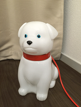 ![]() 漫画の中では足をぶつけて首がグ〜ログ〜ロとなってますが…。 その後なんとなく調べてみたところ、とあるメーカーが作ってる実在するランプだということがわかったのですが、定価で2万円くらいするうえ、いまはもう作られてなくて手に入りにくいそう。 残念だなぁ〜と思ってたのですが、こないだ家の近くを歩いてたら、近所の古道具屋の店頭に飾られてる犬のランプを発見! お値段も5000円!! で、ついに買っちゃいました。