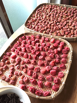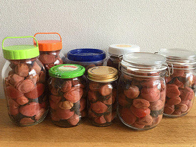 2017年8月26日(土)どんより続き。 毎年悩む梅干しの干しどき。 特に今年の夏は天候が悪く、なかなか干すことができずやきもきしました。 できたら3日連続で晴れそうな日に干し始めたかったのですが、3日どころか1日たりとも晴れてくれず、台風一過でパーッと晴れた8月半ばのある日、「この晴れを逃すか!」と思い切って干し始めました。 ![]() わーい、やっと干せた〜! 強い日差しに照らされ梅がさらに赤くキラキラ輝いて、ぷぅ〜んといいにおい。 梅干し好きにはたまらない光景です。 じゅるる〜〜〜。 そしてこの日はそのままちょっと外出したのですが、そしたら夕方近くなってどんどんあやしい雲が近づいてくるじゃありませんか! 雨に降られちゃったらおしまいなので、大慌てで家に帰って梅干しをとり込んだら、そのあとやはりパラパラ雨が降ってきました。 ふう〜、危なかった…。 しかし翌日からはまたどんより空に逆戻り。 外に干すことができなくて、仕方なく部屋干しに。 ![]() うう、まったく太陽が出てくれない…。 そしてその次の日も天気が悪かったので、もう今年の梅はこれで完成としました。 ちょっと干し具合が弱めだけど、今年の梅干しできた〜。 ![]() 今年は約9kg! 晴れの日をもっと気長に待てばよかったかなぁ〜とも思ったのですが、その後もなかなか晴れないままもう8月も終わりそうになってきました。 思い返せば、まだ梅雨明けじゃないのにガンガン晴れてた7月上〜中旬あたりがいちばん干すのに適してたかなぁ…。 毎年ほんと難しいです。 でもさっそく出来立ての梅干しを食べてみたら、おいしく出来上がってました。 これでしばらくは楽しい梅干しライフを送れそうです。 娘のほうも離乳食を始めて1ヶ月過ぎて、いまのところなんでもモリモリよく食べてくれます。 親に似て食べるの大好きな子かもです。 |